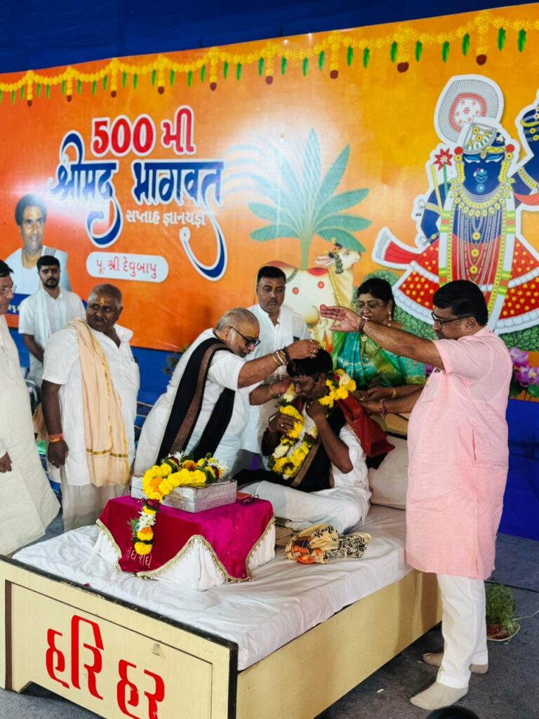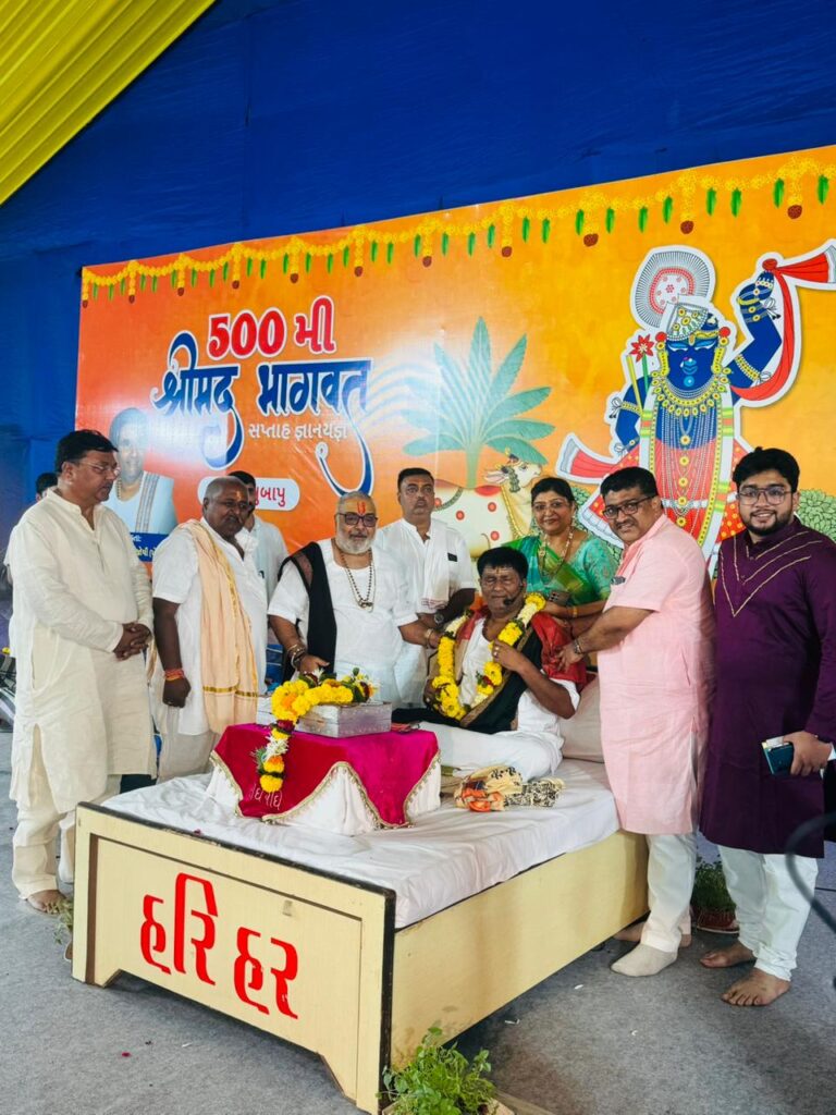 વાપી પાસે ડુંગરા દેસાઈવાડમાં દર્પણભાઈ દેસાઈ જે. ડી.પરિવાર દ્વારા આયોજિત દેવુભાઇ જોશી ની 500 મી ભાગવત કથામાં મંગળવાર વિશ્વવિખ્યાત કથાકાર પ્રફુલભાઇ શુક્લએ આશીર્વાદ આપ્યા હતા.આ પ્રસંગે વાપી પાલિકાના માજી કારોબારી અને