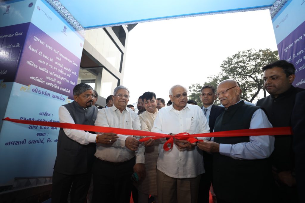 મુખ્યમંત્રી શ્રી ભૂપેન્દ્ર પટેલે નવસારીમાં રૂ. ૮૨ કરોડના ખર્ચે ૫૦૨૫ ચોરસ મીટરમાં નવનિર્મિત અદ્યતન સુવિધાઓ સાથેના બસપોર્ટનું લોકાર્પણ નાણા મંત્રીશ્રી કનુભાઈ દેસાઈ અને વાહનવ્યવહાર રાજ્ય મંત્રી પ્રવિણ માળીની પ્રેરક ઉપસ્થિતિમાં કરવામાં આવ્યું હતું .