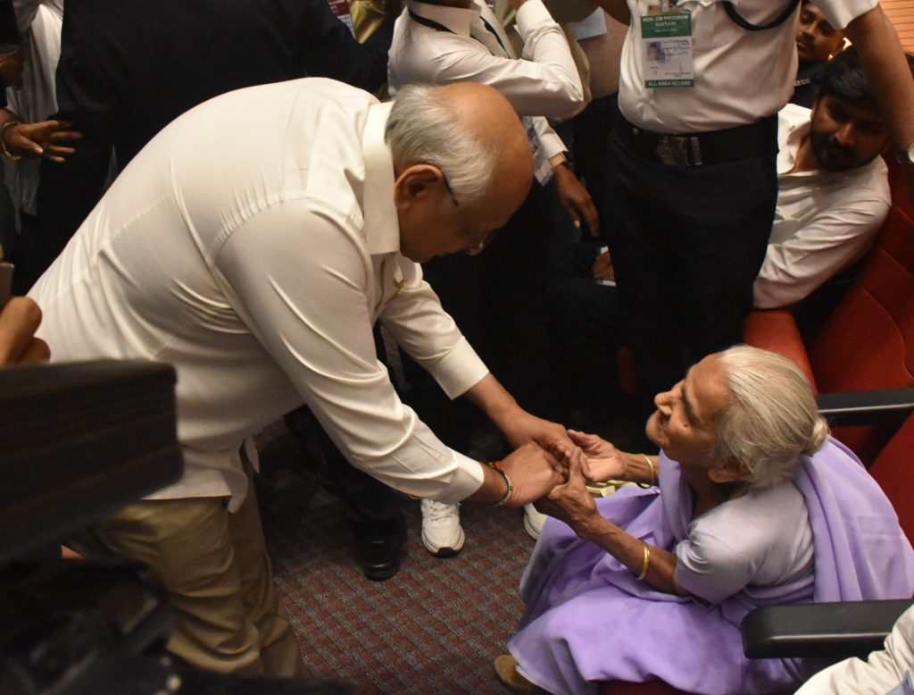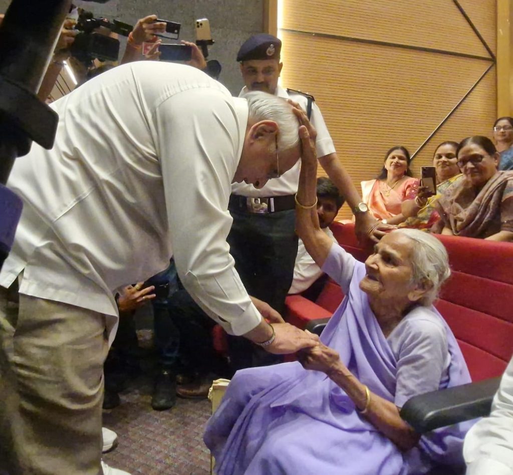 હીરાબા એ મુખ્યમંત્રીશ્રીને હર્ષભેર આશીર્વાદ આપ્યા હતા.ટાઉનહોલ ખાતેના કાર્યક્રમમાં મુખ્યમંત્રીશ્રી ભૂપેન્દ્રભાઈ પટેલને મળવા એક ૯૦ વર્ષીય દાદિમા પહોંચ્યા હતા. વરિષ્ઠ બા સ્ટેજ પર આવવાનો પ્રયાસ કરતા હોવાથી મુખ્યમંત્રીશ્રીએ પોતે સ્ટેજની નીચે આવી બાને મળવા આવ્યા હતા.