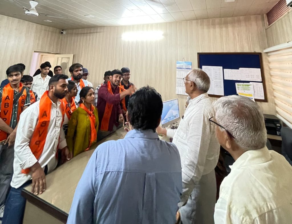 વલસાડ જિલ્લામાં આજે અખિલ ભારતીય વિદ્યાર્થી પરિષદ (ABVP) દ્વારા મોટી સંખ્યામાં કાર્યકર્તાઓ અને વિદ્યાર્થીઓ સાથે નૂતન કેળવણી મંડળની ઓફિસ પર ઉગ્ર વિરોધ પ્રદર્શન કરવામાં આવ્યું હતું.